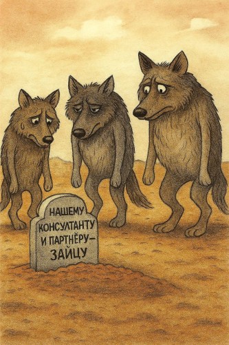 - Не ешьте меня. Я приведу вас к стаду овец (к стабильности, выгоде и процветанию). Волки, ведомые жаждой влияния и наживы, решили пощадить зайца. Пошли за ним, но голод, амбиции, страхи, внутренние кризисы всё сильнее. Терпение иссякает: - Долго ещё? ... Читать дальше » |