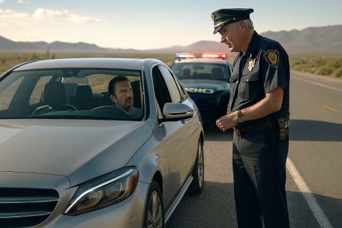 ![]() Один человек летел на своём блестящем «Мерседесе» по бескрайнему хайвею (скоростная трасса в США). День был ясный, ветер врывался в салон, и мир казался простым: чем быстрее едешь, тем дальше оставляешь позади все проблемы. Стрелка спидометра показывала 85 (около 135 км/час) - скорость, на которой душа поёт, а ум дремлет. Внезапно пение оборвалось. В зеркале, как синяя вспышка из другого измерения, возникла полицейская машина. Сердце человека ёкнуло, но потом возмутилось.