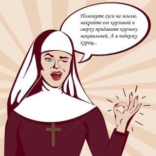 Фермер Джон отправился в город за покупками для фермы. Сначала он зашёл в магазин металлоизделий, где купил небольшую наковальню. На рынке он купил корзину, гуся и две курицы. Однако перед ним встала проблема как все это нести. Услужливый продавец посоветовал ему: