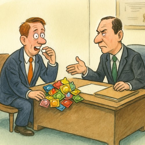 Парень с чудесными рекомендациями, но с нервным тиком, устраивается на работу. Менеджер говорит: "